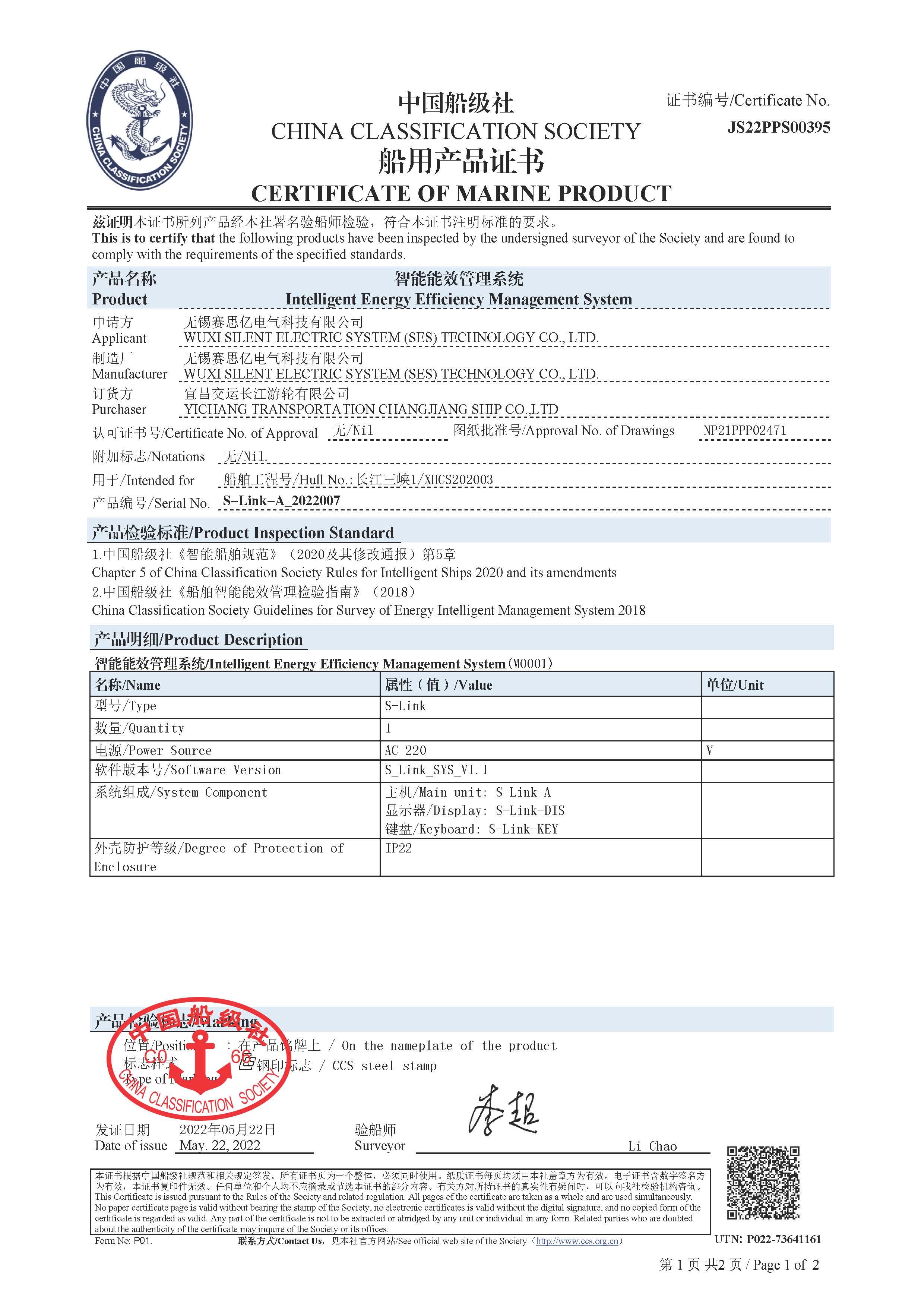 智能能效管理系統(tǒng)產(chǎn)品證書(CCS)