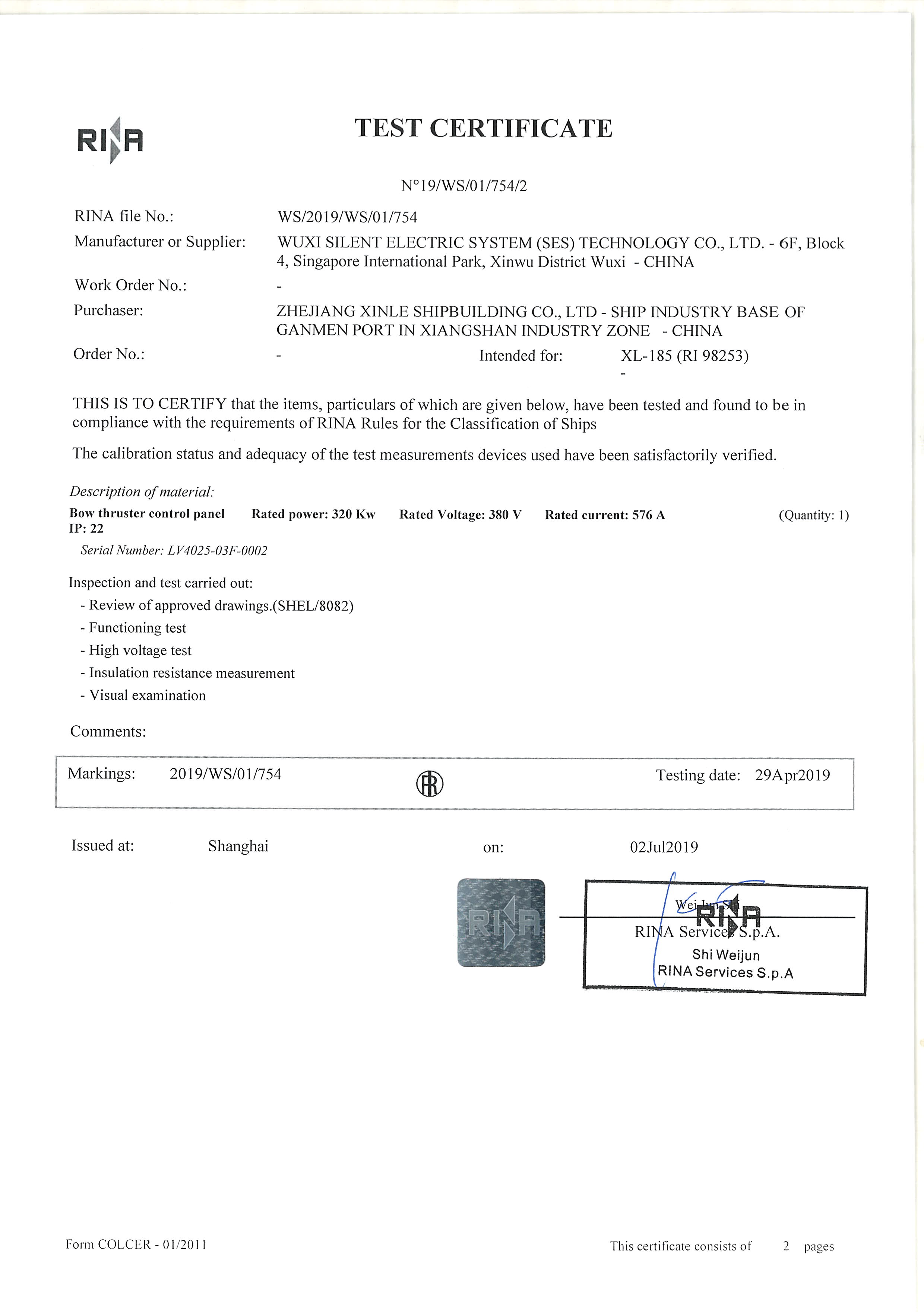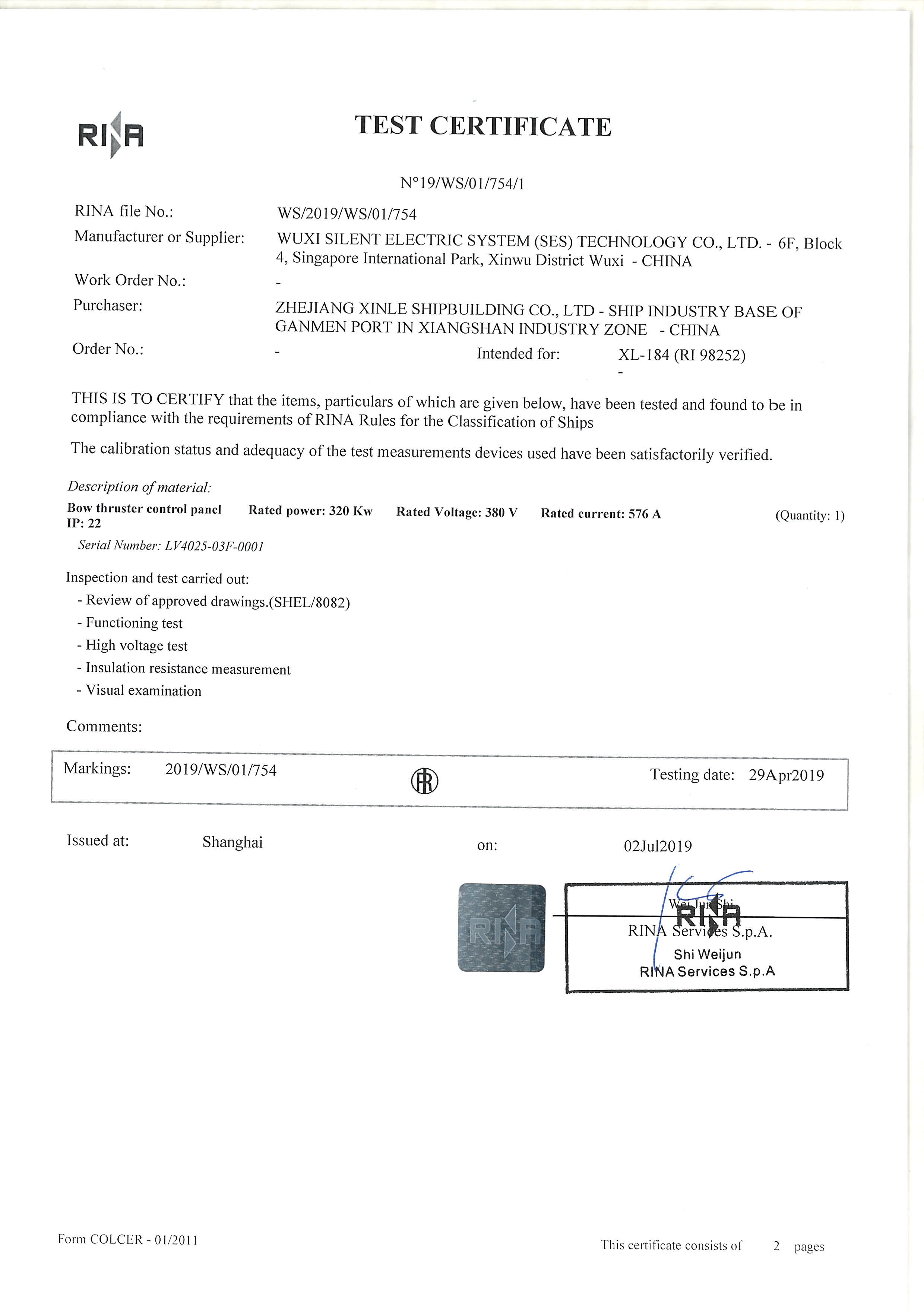 2020年04月10日上午,由浙江新樂造船股份有限公司為瑞士Nova Marine Carriers公司建造,裝備了賽思億艏側(cè)推國(guó)產(chǎn)推進(jìn)變頻電控設(shè)備和艏側(cè)推電機(jī)的6000噸雜貨船1號(hào)船“野?!陛嗠x開公司碼頭前往寧波北侖大榭交船,該船舶的側(cè)推進(jìn)系統(tǒng)由無(wú)錫瑞風(fēng)船用推進(jìn)器有限公司集成。