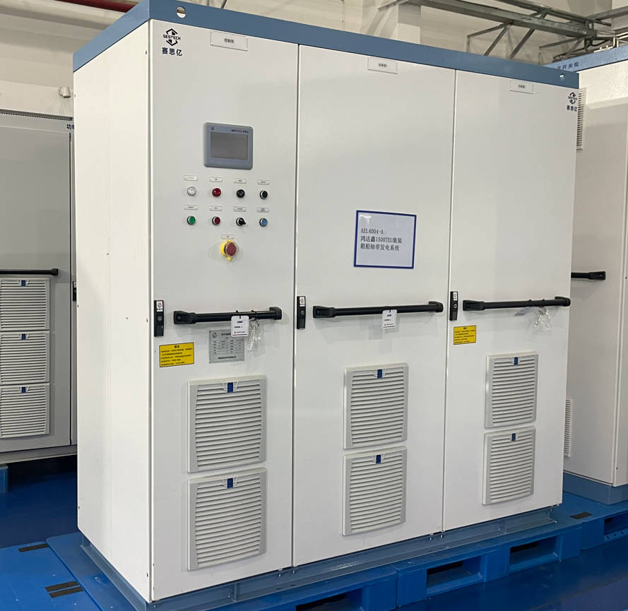由浙江洲潤海運有限責(zé)任公司出資建造的1815TEU集裝箱船,采用賽思億S-Shaft軸帶發(fā)電系統(tǒng),配置一臺630kW的軸帶永磁低速電機及800kW側(cè)推系統(tǒng),核心變頻電控設(shè)備采用賽思億自主知識產(chǎn)權(quán)產(chǎn)品。目前順利通過中國船級社江蘇分社檢驗,發(fā)往中船電機進行陸上聯(lián)調(diào)。