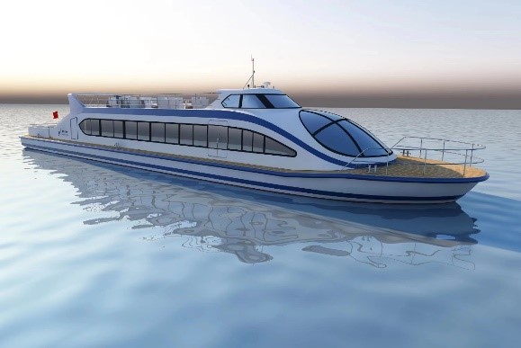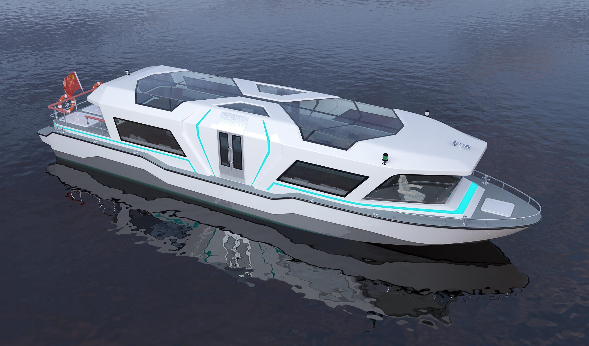 由耀有光科技集團(tuán)有限公司出資、嘉興市偉佳船舶有限公司建造的33m純電動演繹船,總長33.00m,總寬8.40m,型深2.30m,滿載吃水1.40m,載客84人,搭載賽思億S-Renewable小型新能源電力推進(jìn)系統(tǒng),整個系統(tǒng)配置共接入2組鋰電池組,整船鋰電池容量共計833kWh,驅(qū)動2臺90kW的主推電機(jī)。