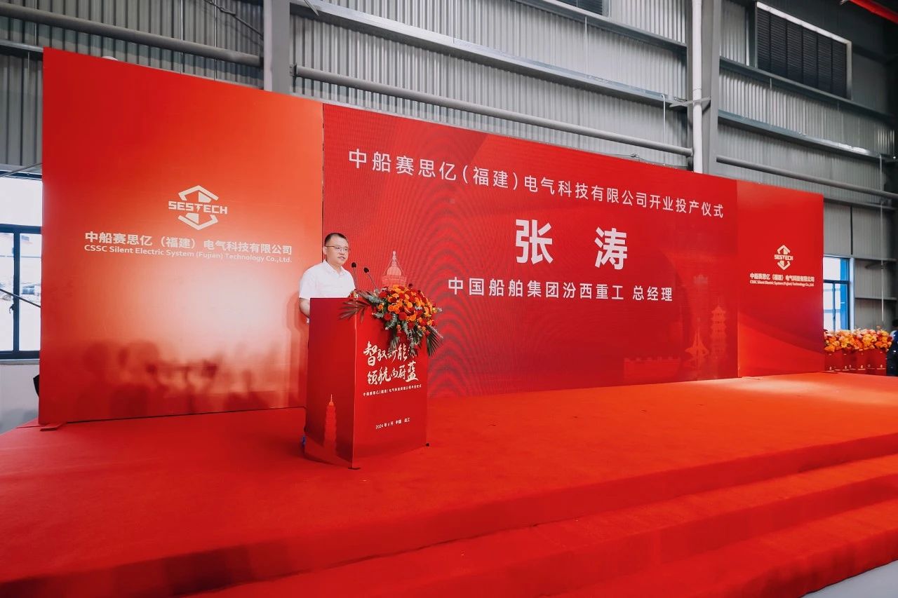 2024年6月30日,中船賽思億(福建)電氣科技有限公司在福建省連江經(jīng)濟開發(fā)區(qū)山崗工業(yè)園區(qū)內(nèi)順利舉行開業(yè)投產(chǎn)儀式,福建省工業(yè)和信息化廳黨組成員、總工程師施惠財、福建省工業(yè)和信息化廳二級調(diào)研員鄭源、福州市工信局黨組成員、一級調(diào)研員程紅梅,福州水路事業(yè)發(fā)展中心副主任翁國強,福州市招商辦招商四組負責(zé)人侯偉彬,連江縣人民政府副縣長張記歡,連江經(jīng)濟開發(fā)區(qū)主任林承文等領(lǐng)導(dǎo)干部,中國船舶集團戰(zhàn)略規(guī)劃部投資處處長顧彩銀、中國船舶集團汾西重工有限責(zé)任公司總經(jīng)理張濤、福建省船舶工業(yè)集團副總經(jīng)理李振均、中國船級社福州分社副總經(jīng)理鄭金東、建造處處長王堅等相關(guān)領(lǐng)導(dǎo),船舶行業(yè)船東、船廠、設(shè)計院、行業(yè)協(xié)會等各級同仁、企業(yè)家代表等出席開業(yè)投產(chǎn)儀式。