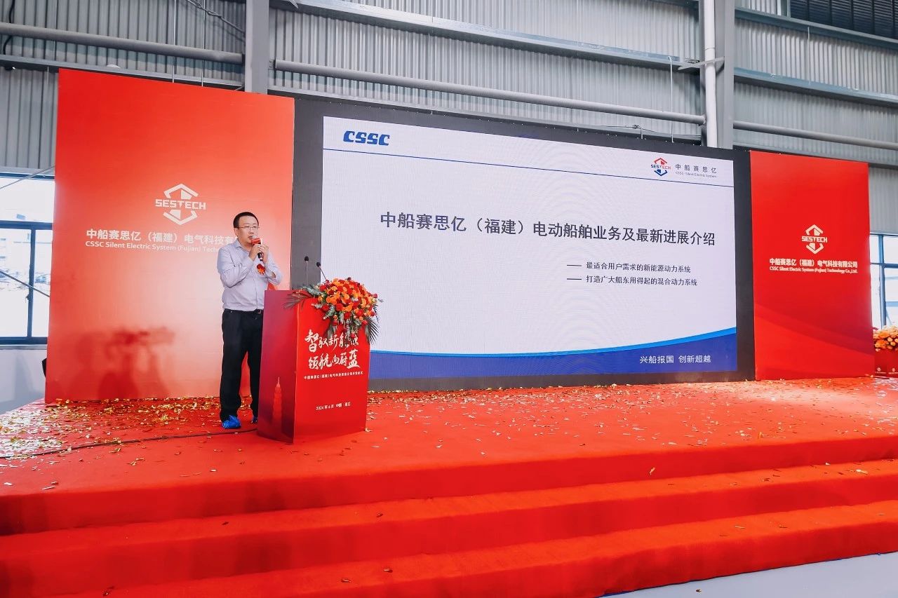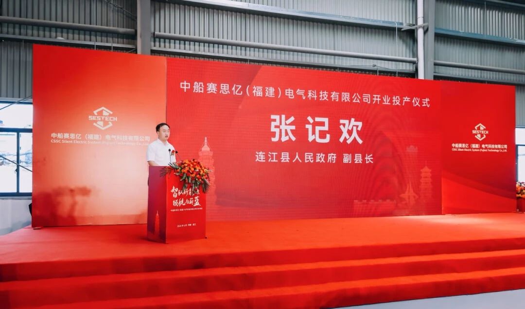 連江縣人民政府副縣長張記歡發(fā)表講話,他表示,中船賽思億(福建)電氣科技有限公司的落地投產(chǎn),是對連江發(fā)展新能源船舶產(chǎn)業(yè)的一次重要推動,是連江加快形成新質(zhì)生產(chǎn)力的一個縮影,并表達了對福建賽思億能夠在連江扎根、成長,并在未來取得更加輝煌成就的期待。