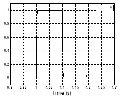 這里討論一階低通濾波器的一種應(yīng)用。左圖為一階低通濾波器的信號輸入,在1s的時候,有一個長度為100ms的有用脈沖信號進入,在1.19s時,有一個長度為0.1ms的干擾信號進入。