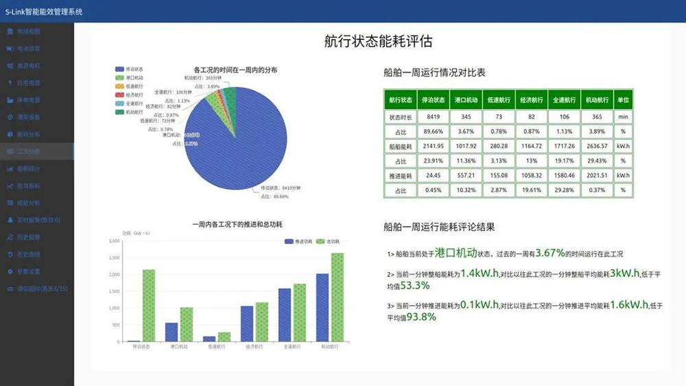基于“長江三峽1”號純電動船的特點,賽思億科研團隊與中國船級社多次深入探討《智能船舶規(guī)范》對純電池船的匹配要點。經過反復研究,賽思億科研團隊開發(fā)了S-Link系統(tǒng),針對純電池船設計出了特殊的能效指標計算模型、續(xù)航里程估算模型、定制化能效類報表等多種突破于先前的新型計算模式。