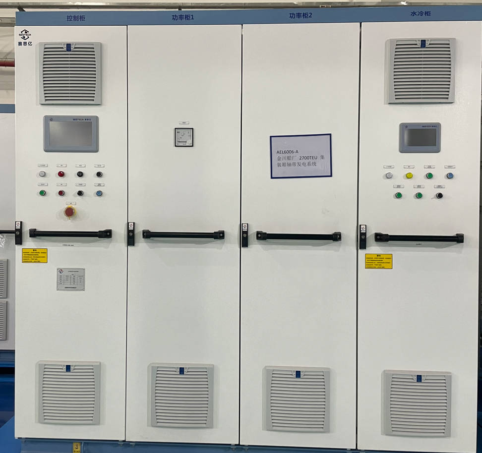 由廈門良翔海運有限公司出資、浙江金川船業(yè)有限公司建造的2700TEU集裝箱船,搭載賽思億S-Shaft軸帶發(fā)電系統(tǒng),系統(tǒng)配置一臺600kW的軸帶永磁低速電機,核心關(guān)鍵變頻電控設(shè)備采用賽思億自主知識產(chǎn)權(quán)產(chǎn)品。目前順利通過中國船級社江蘇分社檢驗,已正式交付船廠。