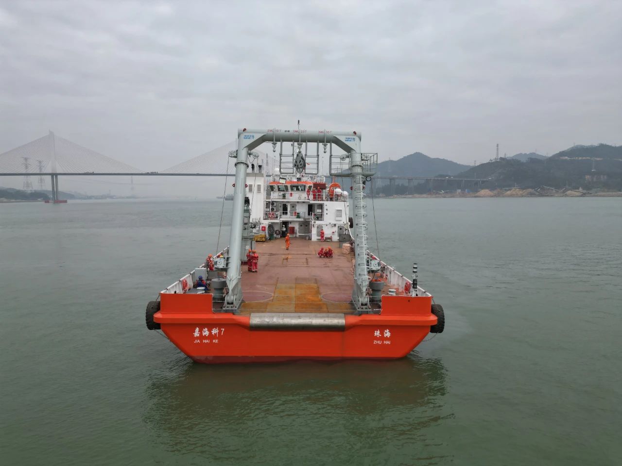 由珠海嘉海海洋科技有限公司投資建設(shè)、廣州打撈局江門有限公司承建、浙江欣海船舶設(shè)計(jì)院股份有限公司設(shè)計(jì)的“嘉???”號(hào)2000噸級(jí)科學(xué)調(diào)查船近期順利交付。“嘉???”號(hào)主要用于近海海洋地質(zhì)勘測(cè)并兼顧遠(yuǎn)海海洋科學(xué)調(diào)查,是一艘具有海洋地質(zhì)勘查及研究功能的綜合調(diào)查船。該船從開工到建成,建設(shè)各方全力配合,耗時(shí)12個(gè)月,順利交付。