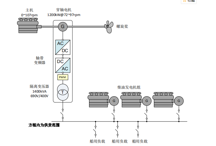 賽思億S-Hybrid軸帶發(fā)電系統(tǒng)軸發(fā)功率為1100kW,此次供貨范圍為軸帶變頻電控設(shè)備、軸帶電機和隔離變壓器,其中軸帶電機采用賽思億兄弟公司中船電機自產(chǎn)的1000kW級國產(chǎn)自主的船用低速永磁穿軸電機。賽思億軸帶發(fā)電系統(tǒng)可利用主機輸出帶動穿軸電機輸出穩(wěn)頻穩(wěn)壓質(zhì)量穩(wěn)定可靠的電源,滿足船舶航行過程中全船的用電負(fù)荷,達到節(jié)約燃油消耗、降低船舶運行成本的目的。